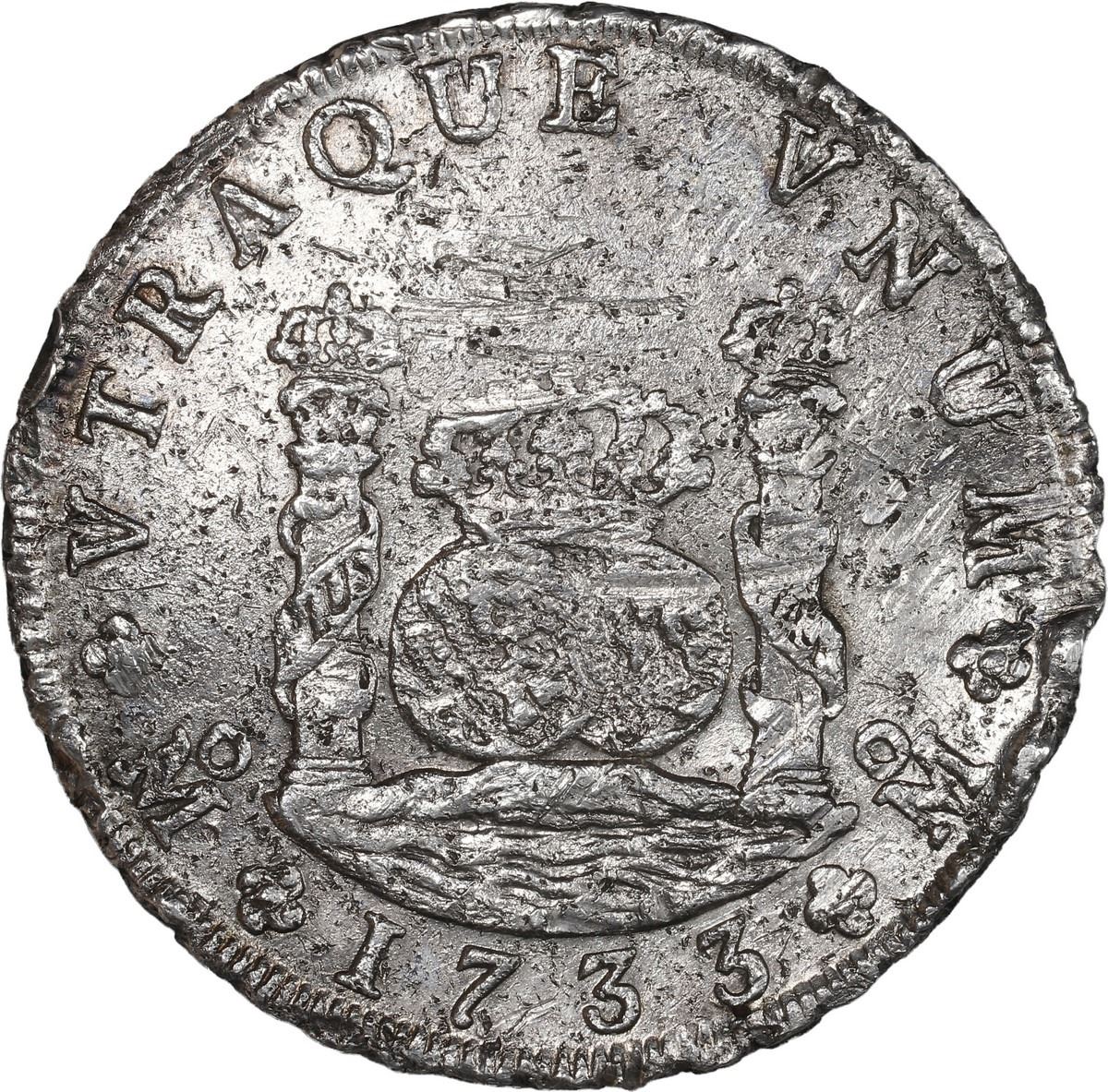 MEXICO, Mexico City, pillar 8 reales, Philip V, 1733/2 MF, small crown, very rare, ex-Eidel.