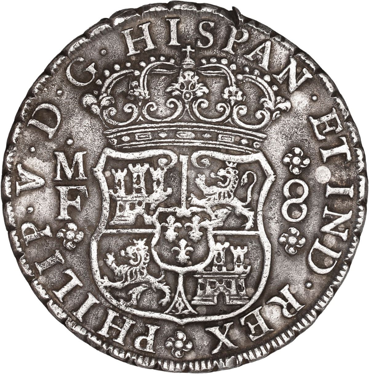 MEXICO, Mexico City, pillar 8 reales, Philip V, 1737 MF.