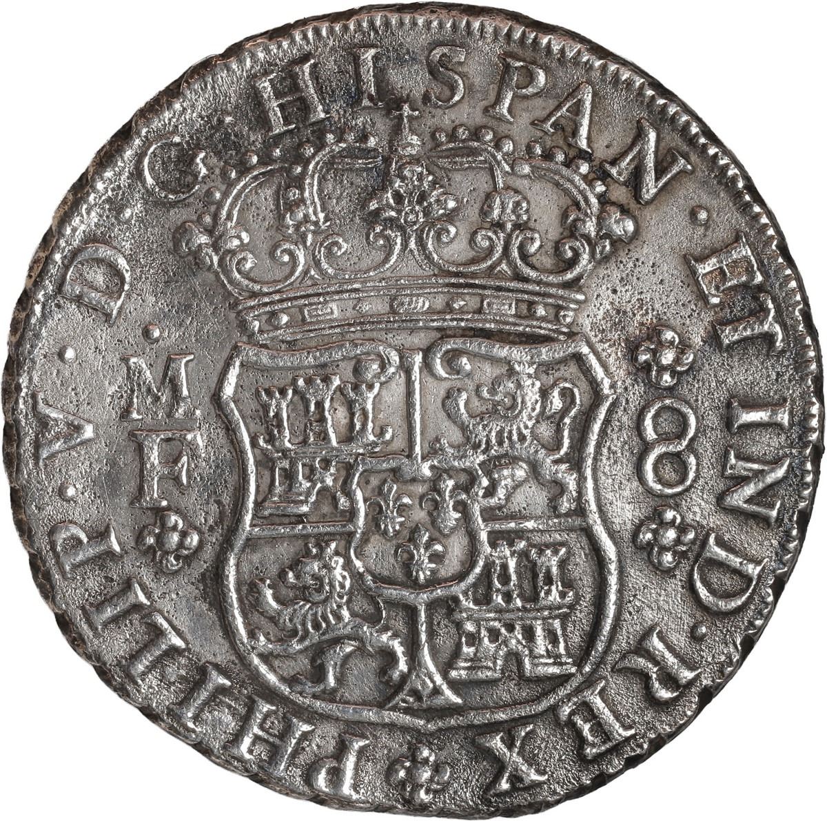 MEXICO, Mexico City, pillar 8 reales, Philip V, 1738 MF.