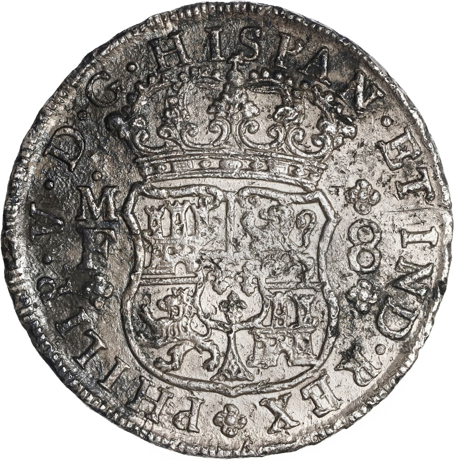 MEXICO, Mexico City, pillar 8 reales, Philip V, 1740 MF, ex-Brameld.