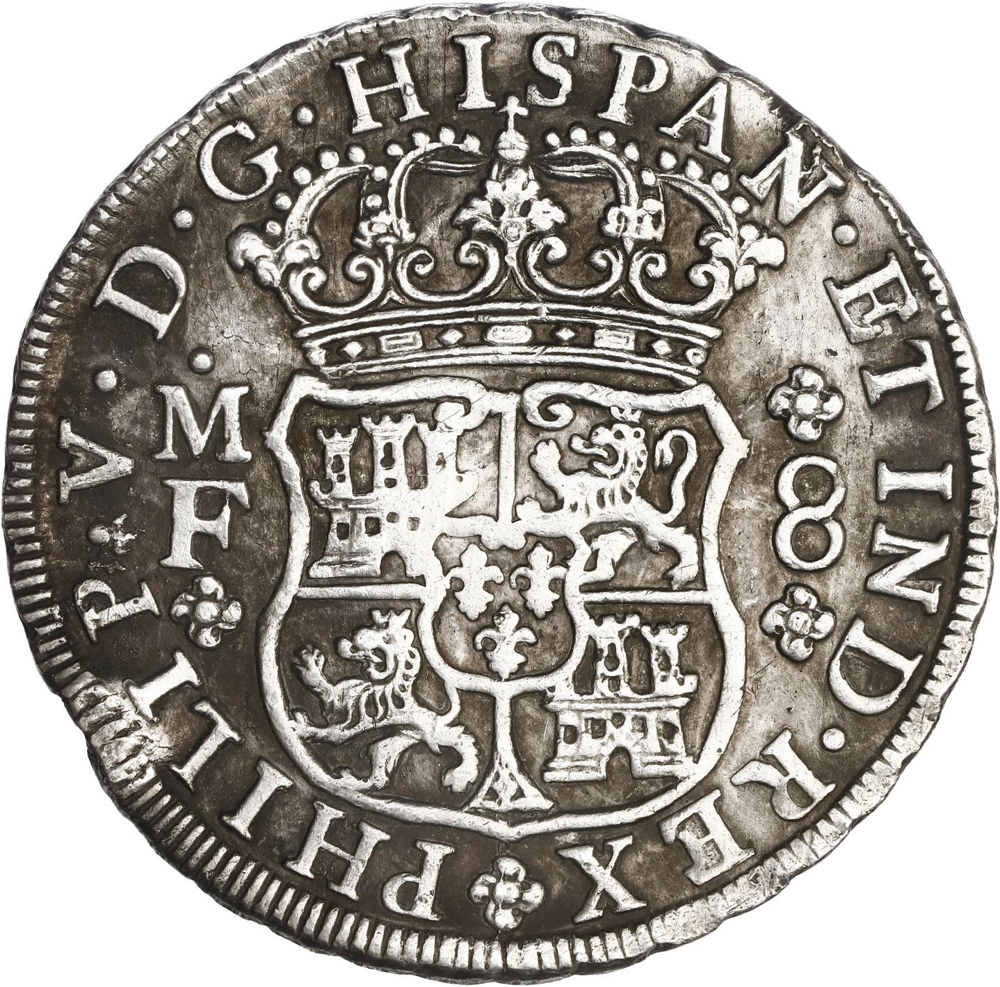 MEXICO, Mexico City, pillar 8 reales, Philip V, 1742 MF.