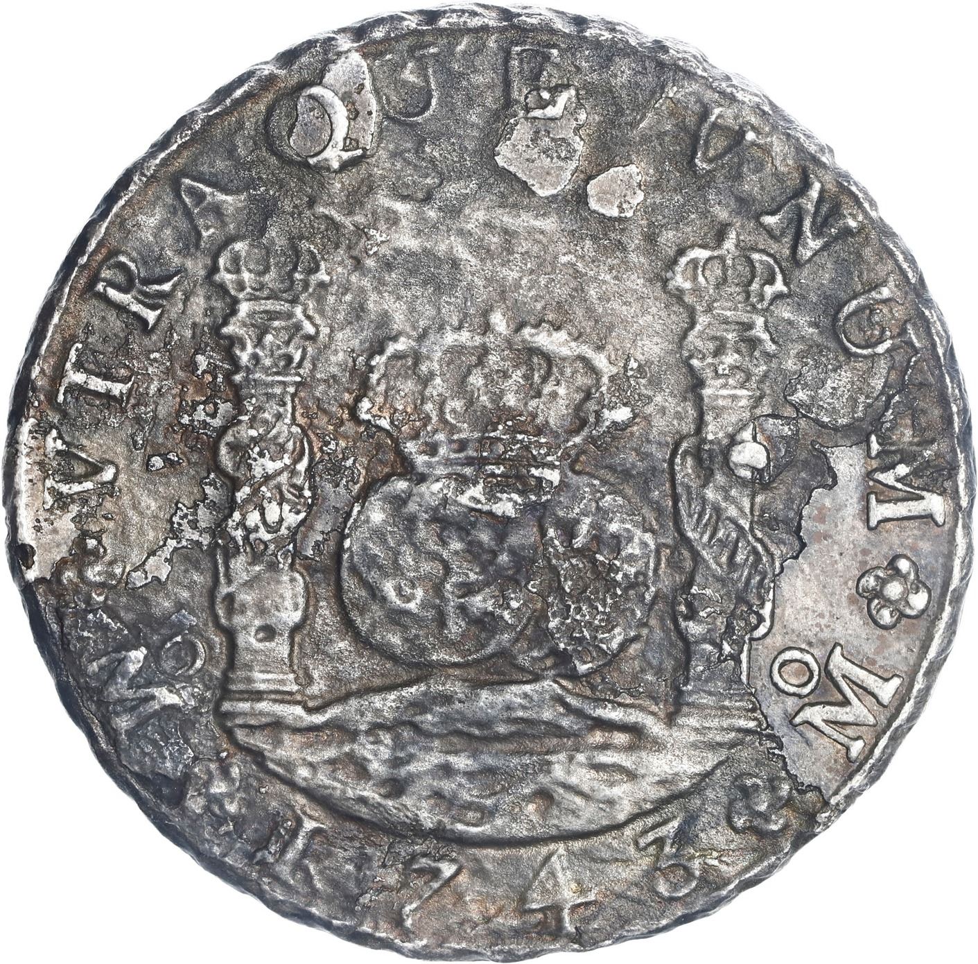 MEXICO, Mexico City, pillar 8 reales, Philip V, 1743 MF, ex-Long, ex-Brameld.