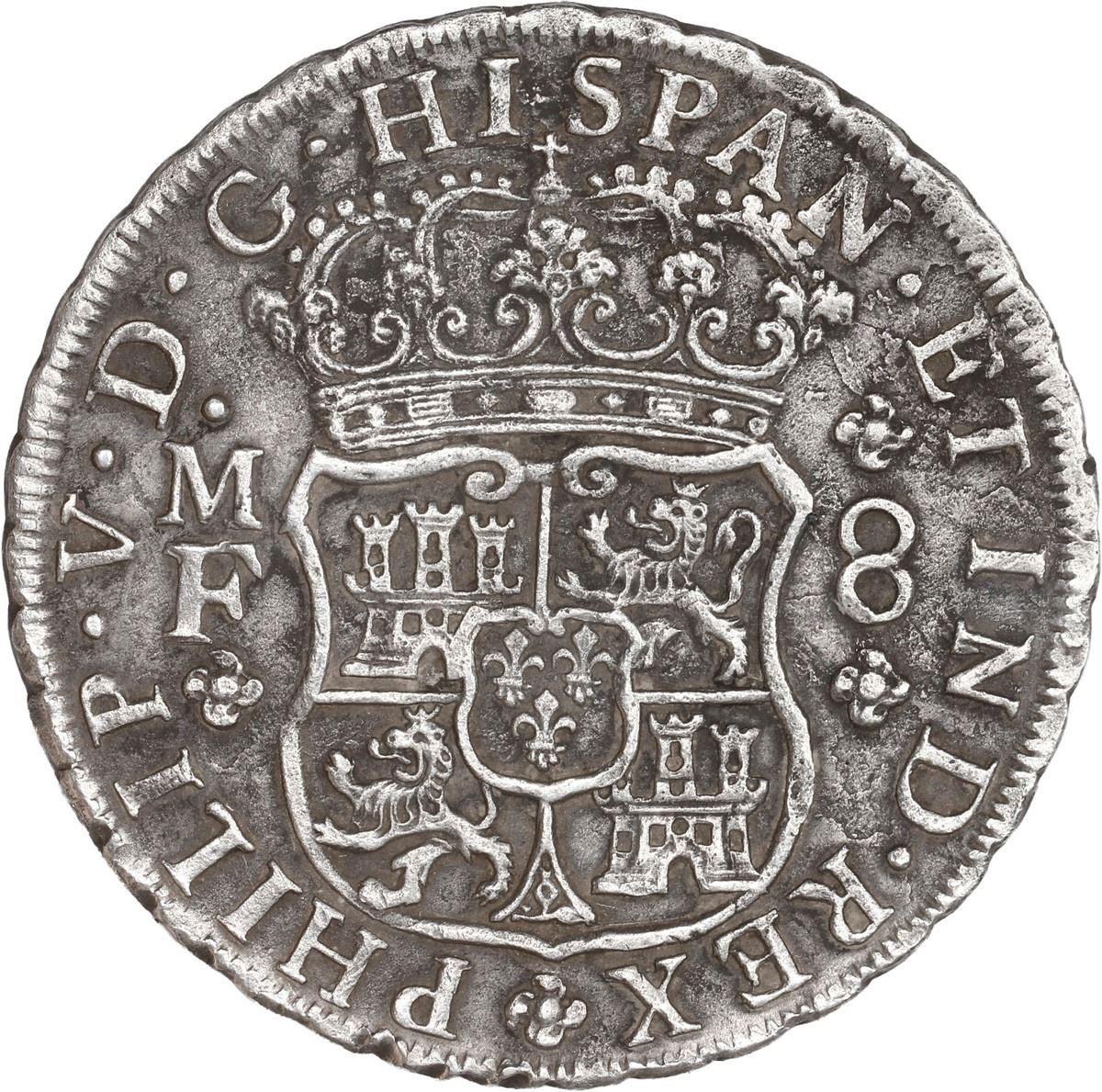 MEXICO, Mexico City, pillar 8 reales, Philip V, 1743 MF.