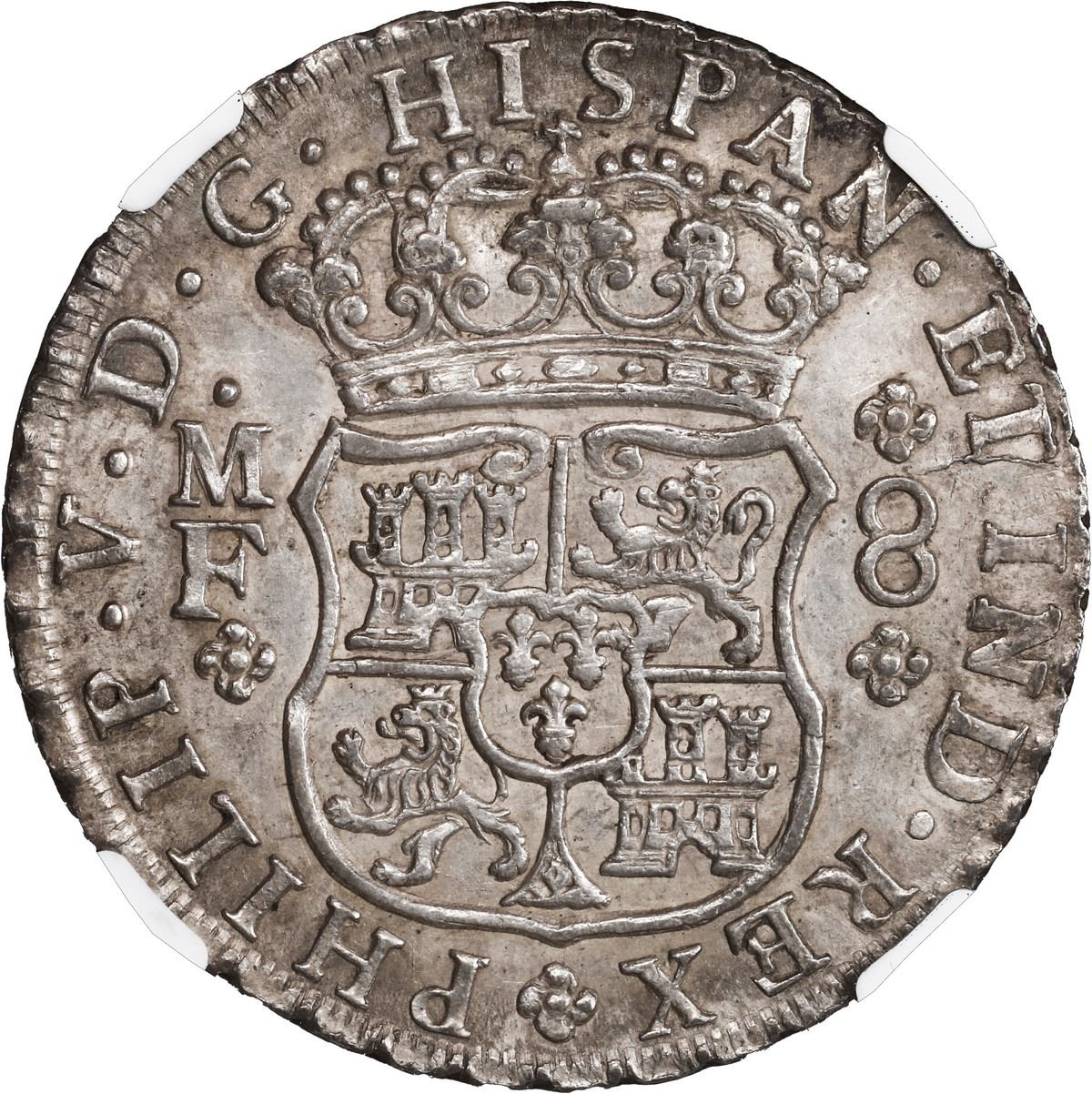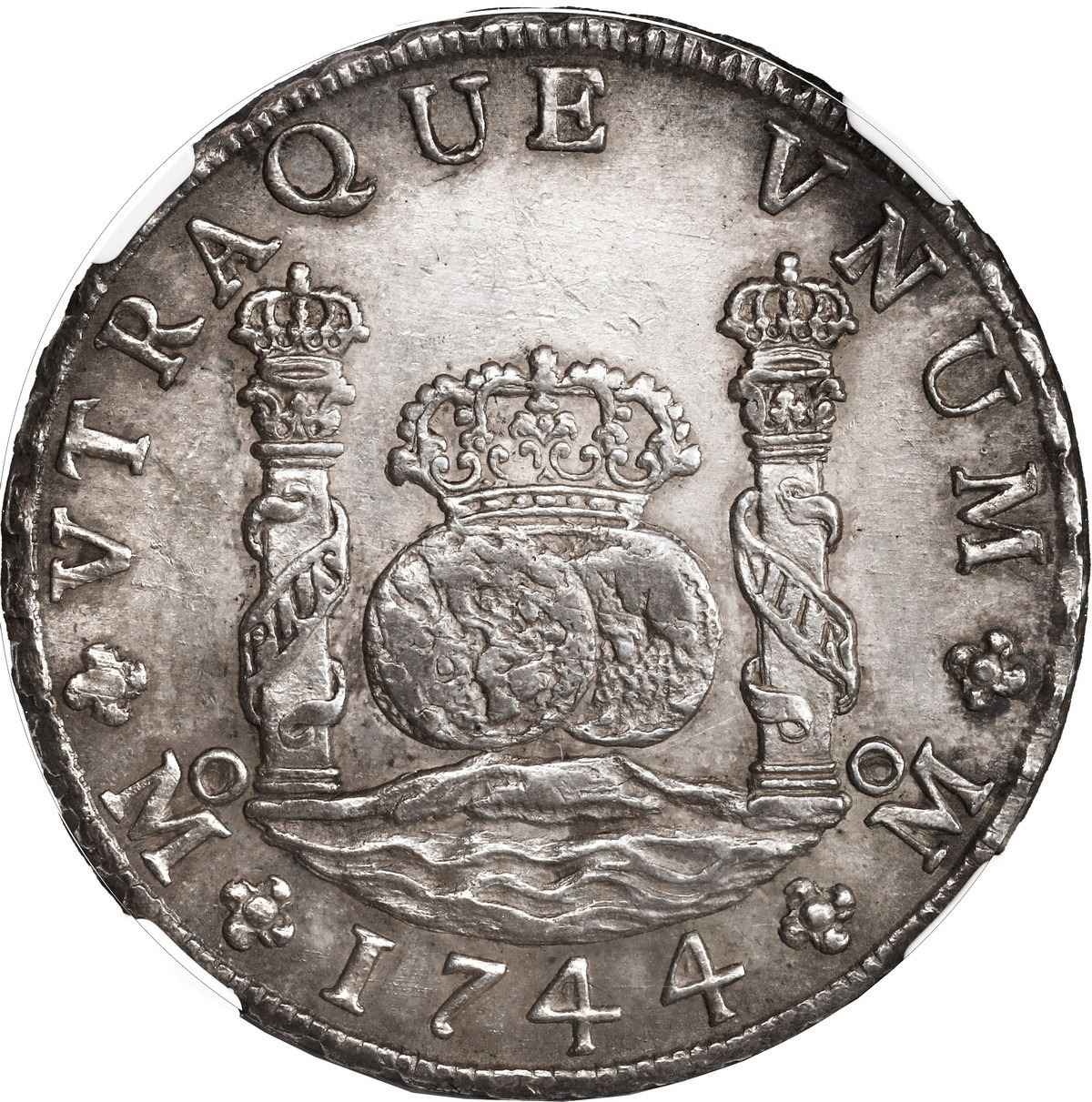 MEXICO, Mexico City, pillar 8 reales, Philip V, 1744 MF, NGC AU 58.