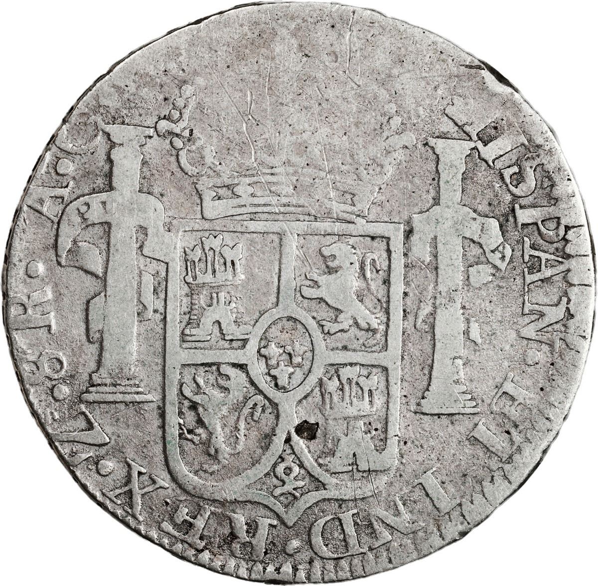 MEXICO, Zacatecas, bust 8 reales, Ferdinand VII, 1818 AG.