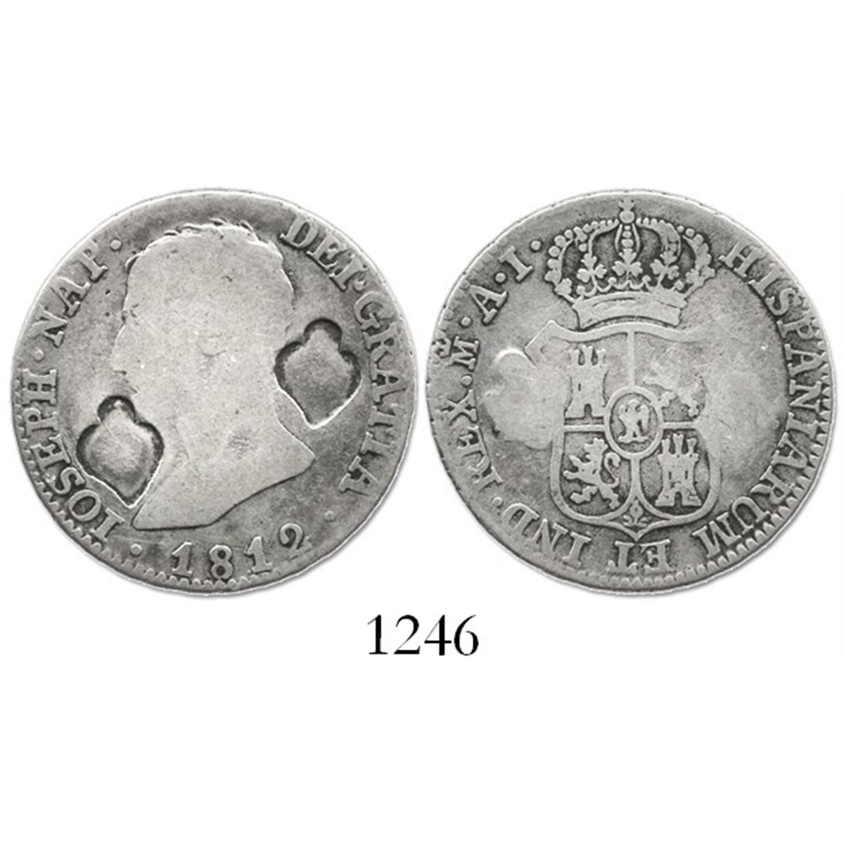Madrid, Spain, 4 reales, Joseph Napoleon, 1812AI, with unidentified "heart(?)" countermarks on obver