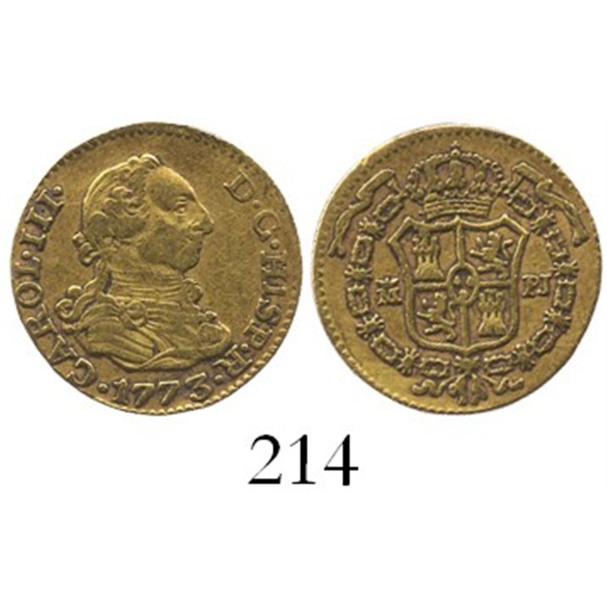 Madrid, Spain, bust 1/2 escudo, Charles III, 1773PJ.