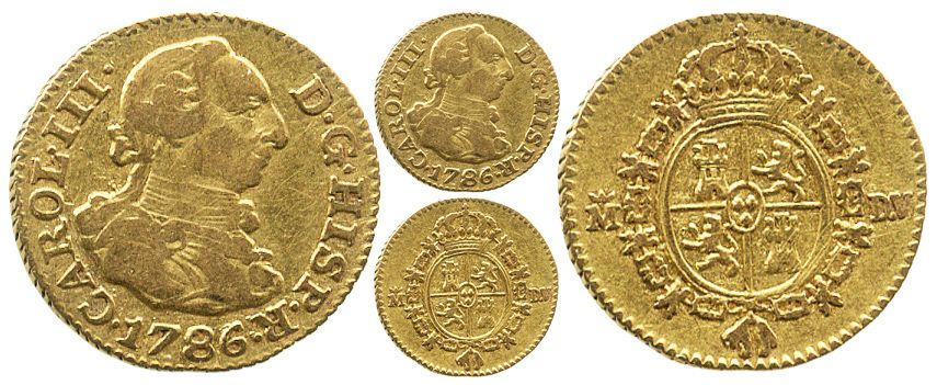Madrid, Spain, bust, 1/2 escudo, Charles III, 1786DV. KM-425.1; CT-778. 1.7 grams. AXF with slightly weak rims, faint adjustment marks on reverse.