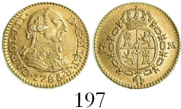 Madrid, Spain, bust 1/2 escudo, Charles III, 1788/8M. CT-781; KM-425.1. 1.70 grams. Mint State but with dings above last digit of date, light red toning all over, the 8/8 clear but unlisted in references so possibly rare.