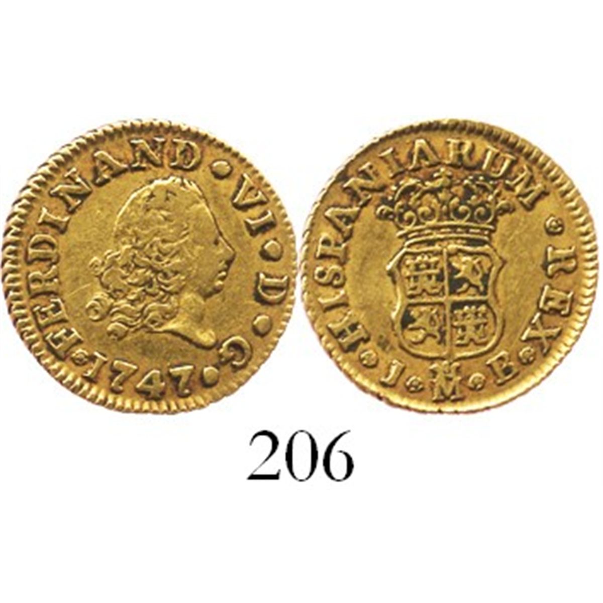 Madrid, Spain, bust 1/2 escudo, Ferdinand VI, 1747JB. CT-242; KM-372. 1.8 grams. Nice VF+ with contrasting toning around details.