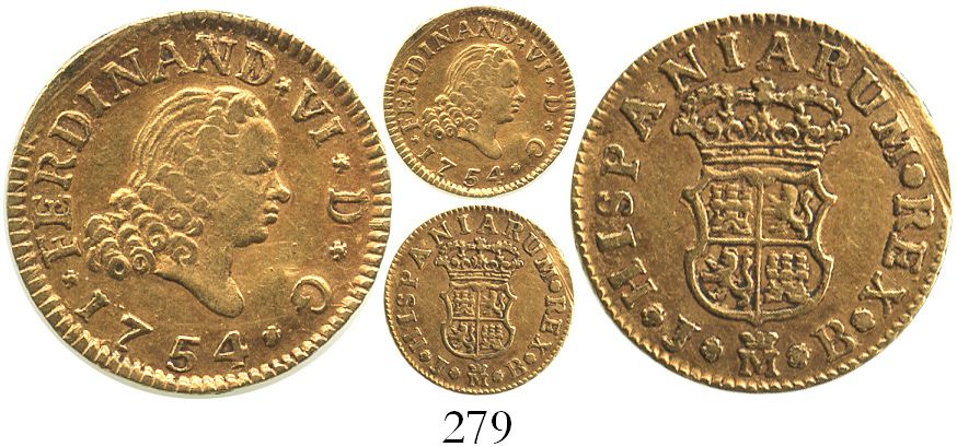 Madrid, Spain, bust 1/2 escudo, Ferdinand VI, 1754JB. CT-251; KM-378. 1.7 grams. Richly red-toned AXF with adjustment marks on reverse rim, attractive.