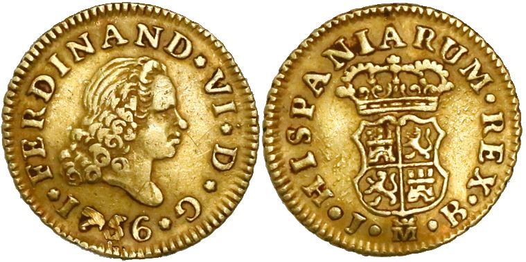 Madrid, Spain, bust 1/2 escudo, Ferdinand VI, 1756JB.