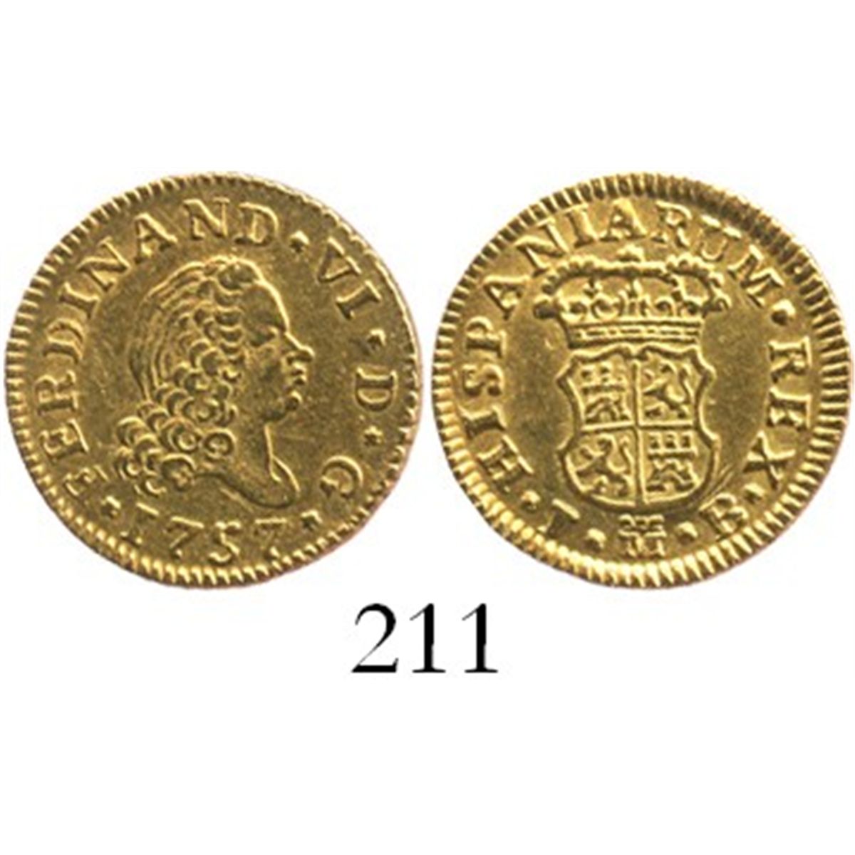 Madrid, Spain, bust 1/2 escudo, Ferdinand VI, 1757JB.