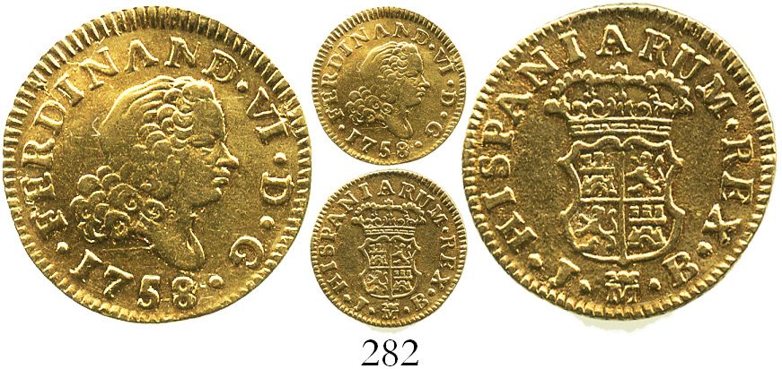 Madrid, Spain, bust 1/2 escudo, Ferdinand VI, 1758JB. CT-256; KM-378. 1.8 grams. Lightly polished XF+, good strike, somewhat flashy.