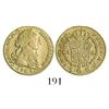 Madrid, Spain, bust 1 escudo, Charles III, 1781/0PJ. CT-623; KM-unl. (cf. 416.1). 3.32 grams. Bold VF with digs on reverse, clear overdate.