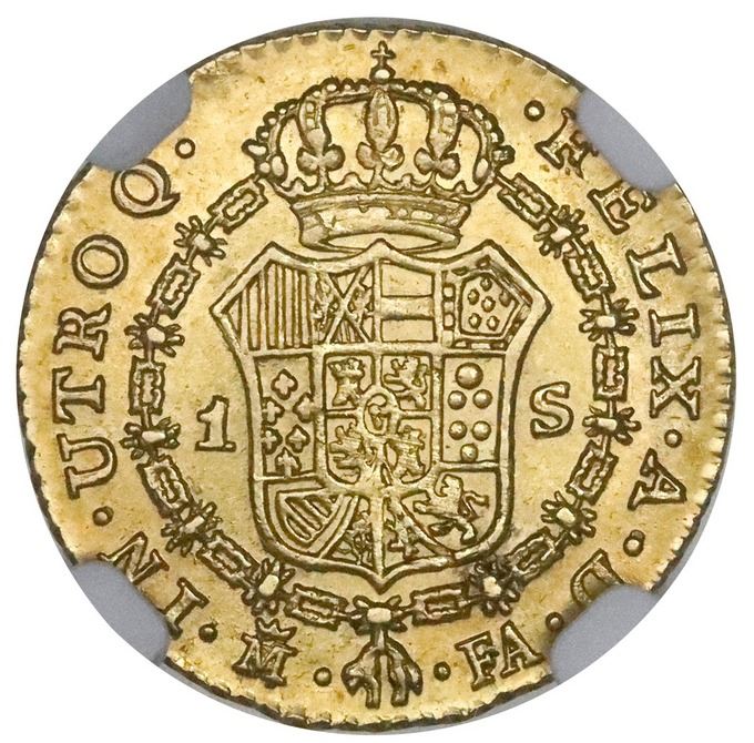 Madrid, Spain, bust 1 escudo, Charles IV, 1807FA, NGC MS 63.