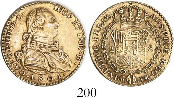 Madrid, Spain, bust 2 escudos, Charles IV, 1801FM, contemporary counterfeit struck in gilt platinum, rare. 6.62 grams. Bold XF+ with hint of platinum color on cheek, clearly circulated but with details slightly incorrect (including the assayer).