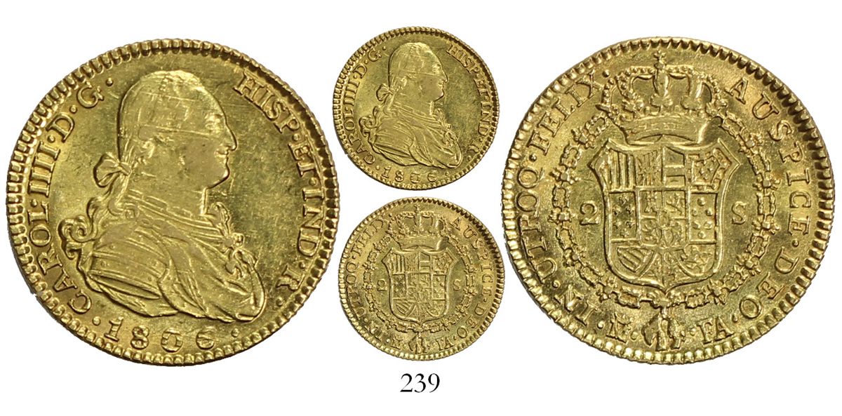 Madrid, Spain, bust 2 escudos, Charles IV, 1806FA. KM-435.1; CT-349. 6.78 grams. Highly lustrous Mint State with very faint hairlines on obverse.