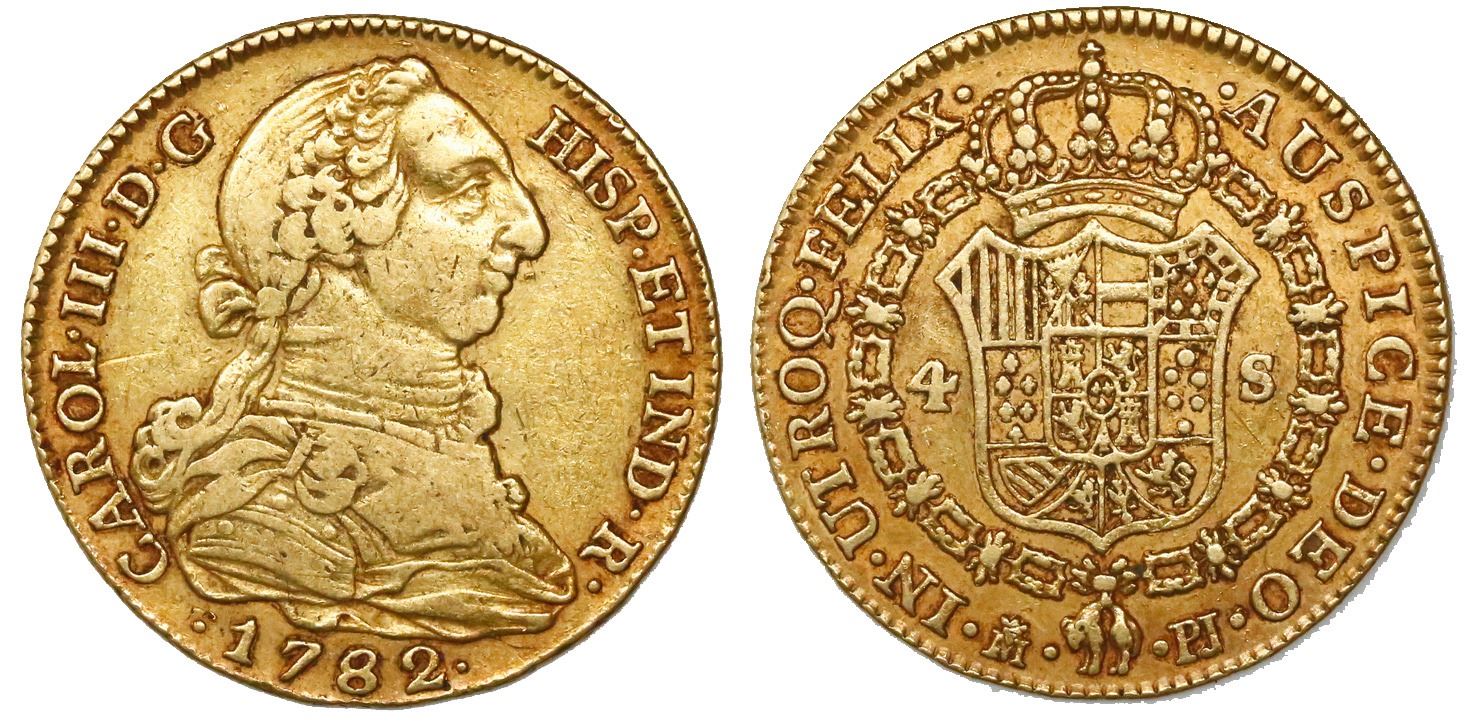 Madrid, Spain, bust 4 escudos, Charles III, 1782PJ.