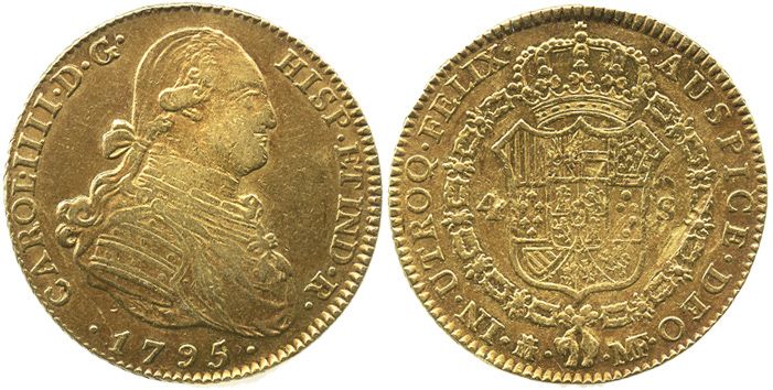 Madrid, Spain, bust 4 escudos, Charles IV, 1795MF.