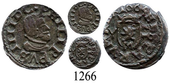 Madrid, Spain, copper 2 maravedís, Philip IV, 1663Y. CT-1208. 0.5 gram. Tiny copper coin with nice details (bust and lion in crowned shield, bold full legends), off-center strike, dark brown color.