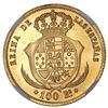 Madrid, Spain, gold 100 reales, Isabel II, 1854, NGC MS 64.