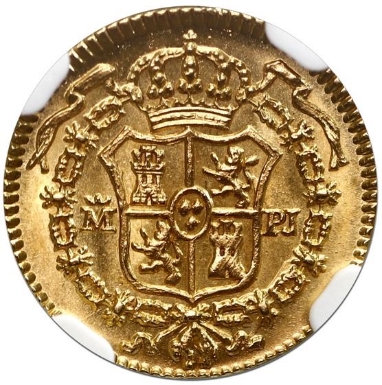 Madrid, Spain, gold bust 1/2 escudo, Charles III, 1778 PJ, NGC MS 64.