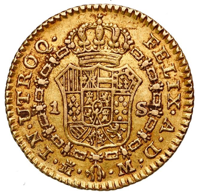 Madrid, Spain, gold bust 1 escudo, Charles III, 1788 M.