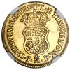 Madrid, Spain, gold bust 1 escudo, Philip V, 1741JF, NGC AU 55. Cal-1720; KM-342. Bold strike and satin-smooth fields with muted luster, toning in crevices, off-center strike, lamination flaw and small mark to right of shield, second finest in NGC census behind a single MS 62. NGC #3901818-002.