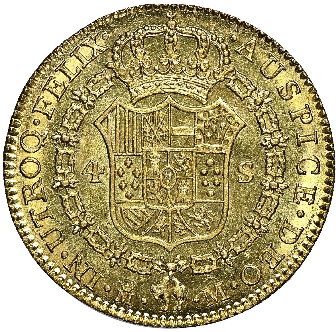 Madrid, Spain, gold bust 4 escudos, Charles III, 1788 M, NGC MS 64 ( top pop ).