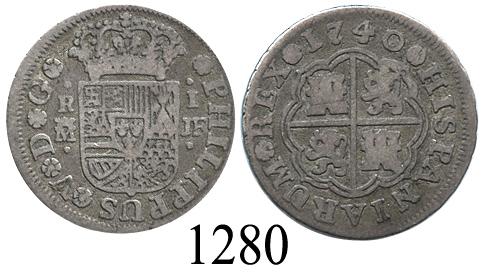 Madrid, Spain, milled 1 real "half pistareen," Philip V, 1740JF. CT-1233. 2.8 grams. Off-center Fine, nicely toned.