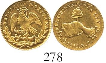Mexico City, Mexico, 1/2 escudo, 1851GC. KM-378.5. 1.7 grams. Lustrous AU with weak centers.