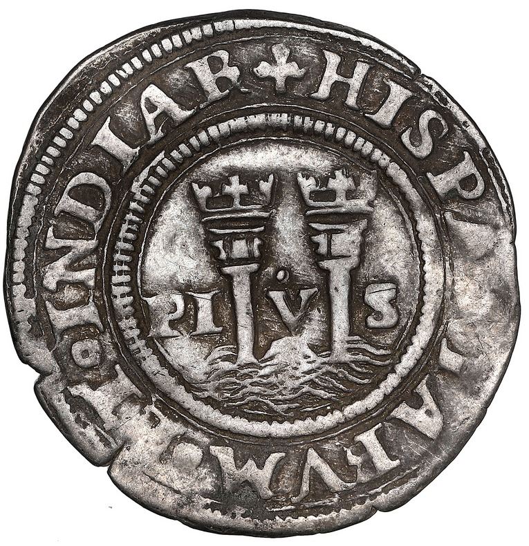 Mexico City, Mexico, 1/2 real, Charles-Joanna, "Late Series," assayer A to left, o to right, mintmark oMo below monogram, motto PL-V-S, NGC XF 40, finest and only example in NGC census. Nesmith-59b; Cal-49; S-M6; KM-49. 1.64 grams. From a 1962 hoard of coins from Guatemala, a lovely example struck on a broad flan, with nice toning and curious use of a trefoil at top of either legend, not mentioned by Nesmith but evident in his plate coin. While not exceedingly rare, hard to find in this condition. NGC #6448110-042. Pedigreed to the Clyde Hubbard Collection of Mexican Charles-Joanna Coinage (stated on label). Accompanied by original tag or holder from Clyde Hubbard.
