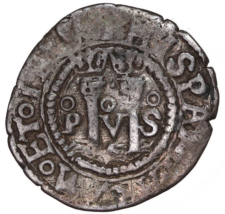 Mexico City, Mexico, 1/2 real, Charles-Joanna, "Late Series," assayer O to right, oM to left, o between monogram, motto oP-oV-oS, very rare, NGC VF 30. Nesmith-107 for type; Cal-unlisted; S-M10; KM-6.5. 1.60 grams. An unlisted variety in Nesmith because of the motto as oP-oV-oS (first time we have seen this, although there are many spelling differences of the motto from this assayer), a decent strike with low toning, legends somewhat smudged but interiors clear. Pedigreed to the Clyde Hubbard Collection of Mexican Charles-Joanna Coinage (stated on label). Accompanied by original tag or holder.