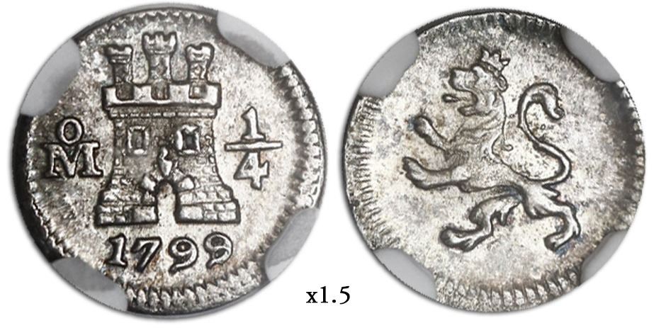 Mexico City, Mexico, 1/4 real, 1799/8, NGC MS 64.
