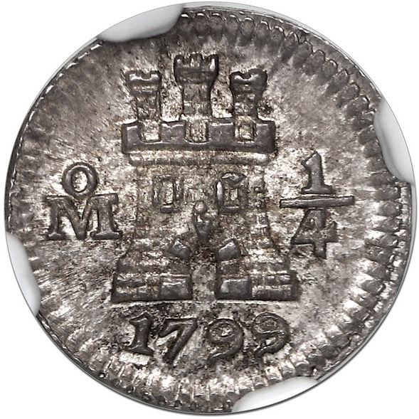 Mexico City, Mexico, 1/4 real, 1799/8, NGC MS 64.