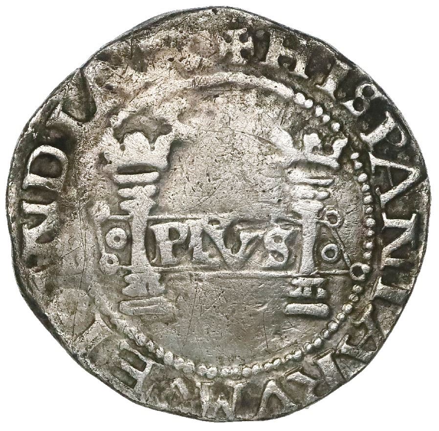 Mexico City, Mexico, 1 real, Charles-Joanna, "Early Series," assayer P to right, mintmark M to left (oMo-oPo), left-leaning panel, rare. Nesmith-24d; Cal-91; S-M4; KM-7. 3.20 grams. Hard-to-find denomination in the Early Series coinage, a later type from this assayer with the use of HISPANIARVM and mascles as stops between words in legends (a lesser example can be found in the A.N.S. collection), XF with almost-full legends and nice inner details, minor corrosion around edges.