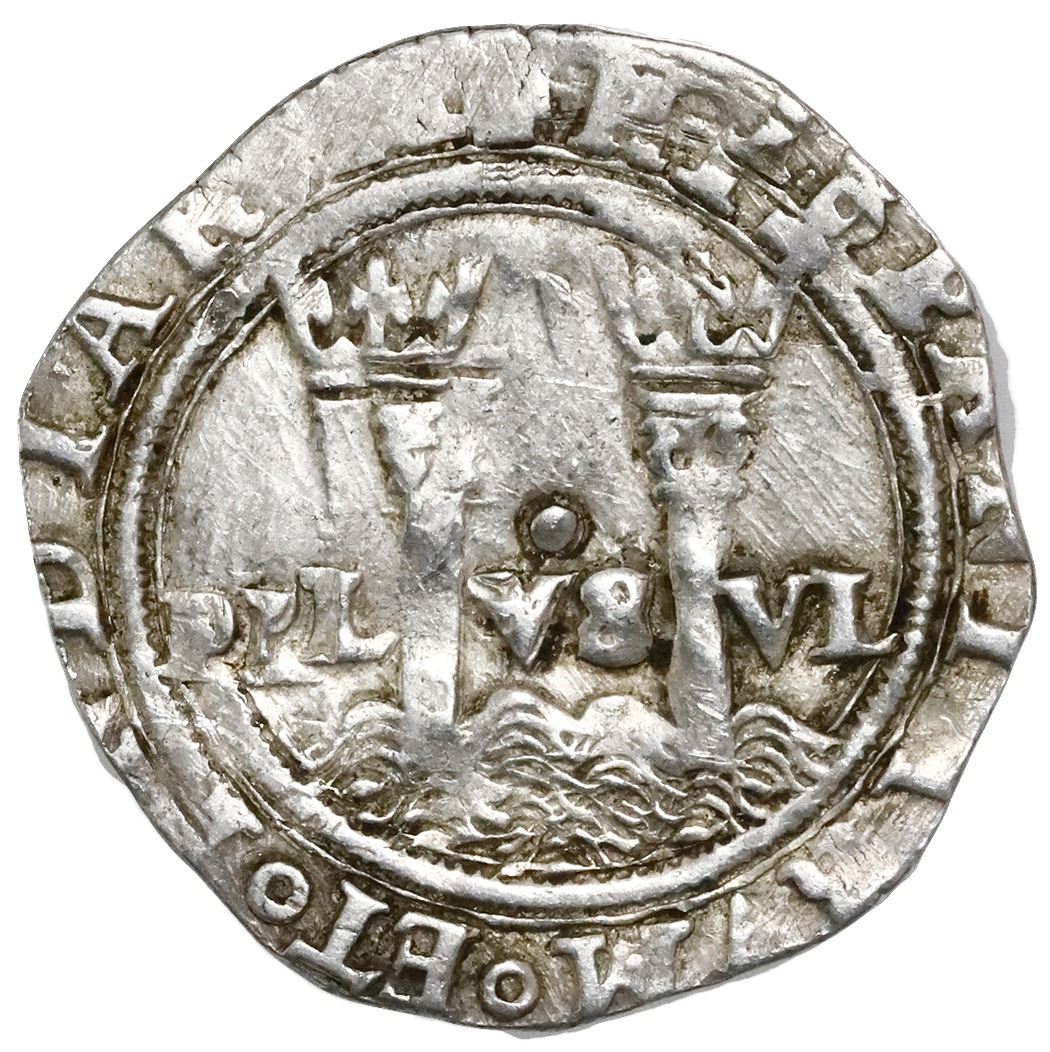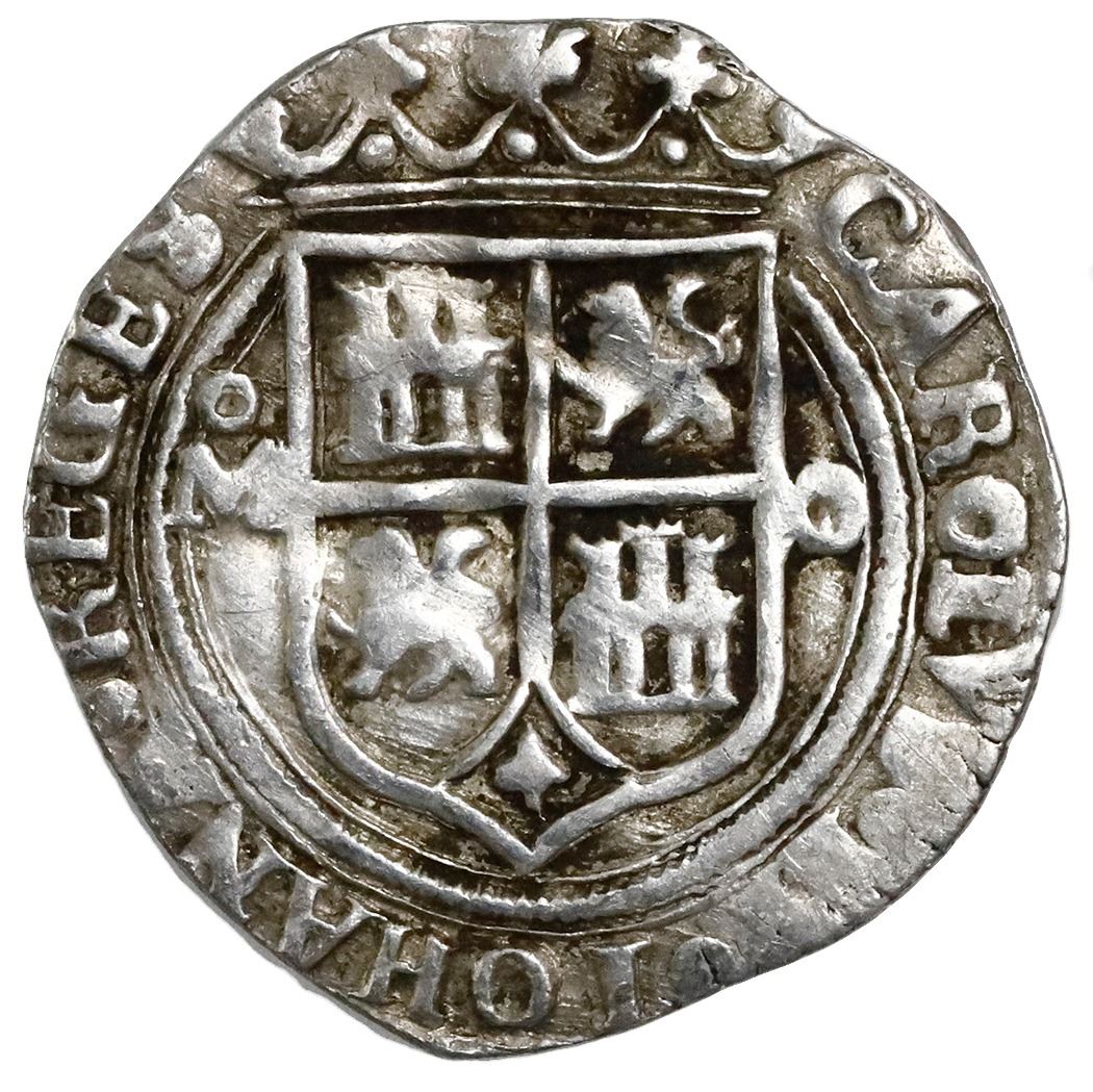 Mexico City, Mexico, 1 real, Charles-Joanna, "Late Series," assayer O/L to right, mintmark oM to left (oM-O/L), ex-Jones. Nesmith-108a; Cal-150; S-M10. 3.35 grams. Much bold strike with dark, contrasting encrustation in crevices, virtually full legends, a scarce over-assayer example, VF. Pedigreed to the Dr. Peter Jones collection and to the El Mundo de la Moneda auction of September 2004 (lot #30).