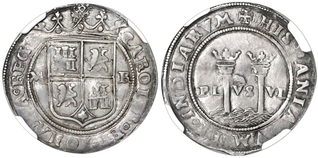 Mexico City, Mexico, 1 real, Charles-Joanna, "Late Series," assayer R to right, mintmark M to left (M-R), NGC XF 45, ex-Rudman (stated on label). Nesmith-68 for type; CT-155; S-M7. 3.4 grams. Broad flan with full details, very slight doubling in shield, lightly toned all over. Pedigreed to the Isaac Rudman collection. NGC #2789229-014.