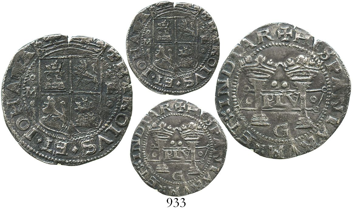 Mexico City, Mexico, 2 reales, Charles-Joanna, "Early Series," assayer G at bottom between pillars, mintmark M over previous assayer F/P to right of shield, unique for this denomination. Nesmith-10 for type; S-M2; KM-11. 6.4 grams. Full legends, choice pillars, well-detailed but lightly corroded shield (XF+ overall), tiny edge-split, nicely toned. This M/F/P multiple over-punching was previously known in 4R and 1R, and in fact was the key to deciphering the progression of assayers from P to F to G; this 2R specimen, however, appears to be the first example known. From the "Golden Fleece wreck" (ca. 1550).