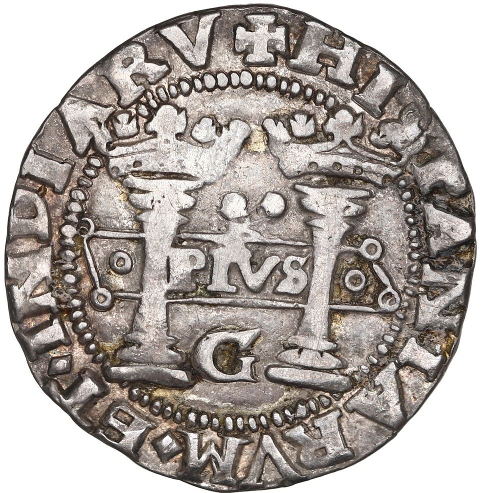 Mexico City, Mexico, 2 reales, Charles-Joanna, "Early Series," assayer G between bottoms of pillars,