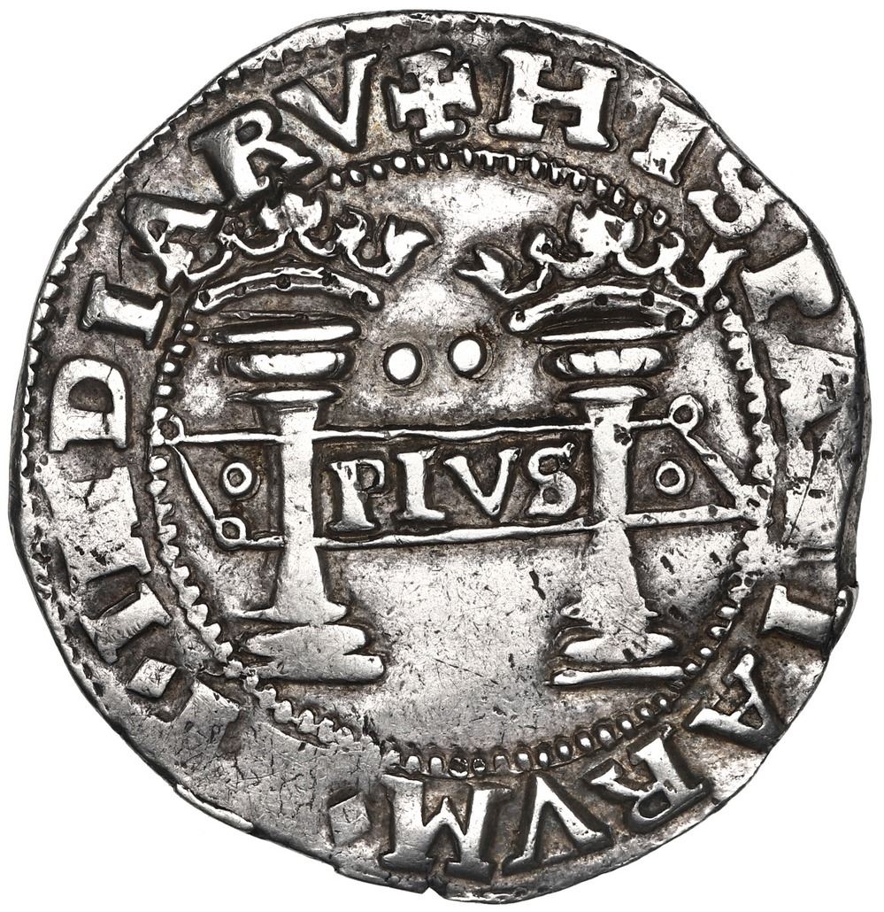 Mexico City, Mexico, 2 reales, Charles-Joanna, "Early Series," assayer P to right, mintmark M to left (oMo-oPo), motto as PLVS in left-leaning rhomboid panel with single annulets on either side, lions and castles transposed, extremely rare, NGC AU 53. Nesmith-25b; Cal-91; S-M4; KM-11. 6.78 grams. A unique variety with lions and castles transposed (this almost never happened even in other denominations or with other assayers). There are only four known, one of which (Nesmith's plate coin) was donated to the ANS by its owner, Wayte Raymond, and the others were shipwreck pieces. This specimen is non-salvage, with beautiful toning, bold features and full legends (with some slight doubling) and interiors. In high grade, it is clearly a very important piece for the advanced collector. NGC #6448168-032. Pedigreed to the Clyde Hubbard Collection of Mexican Charles-Joanna Coinage and to the Superior auction of June 1979, with original lot-tag 2538. Accompanied by original tag or holder from Clyde Hubbard.