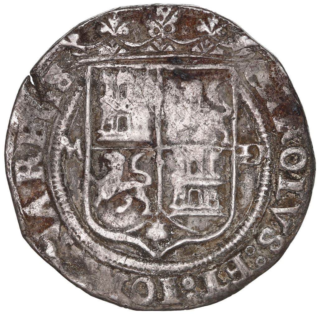 Mexico City, Mexico, 2 reales, Charles-Joanna, "Late Series," assayer inverted G (very rare) to right, mintmark M to left (M-inverted G), rare, NGC VF details / environmental damage. Nesmith-unl; Cal-unl; S-M5; KM-12 for type. 6.63 grams. Unknown to Nesmith, this special error of an inverted G is rare, thus acquiring it in any condition is a prize. While some details are a bit fuzzy (probably due to land burial), the inverted G is clear, with scratches on both sides, some corrosion in legends and one edge-split. Pedigreed to the Clyde Hubbard Collection of Mexican Charles-Joanna Coinage (stated on label). Accompanied by original tag or holder.
