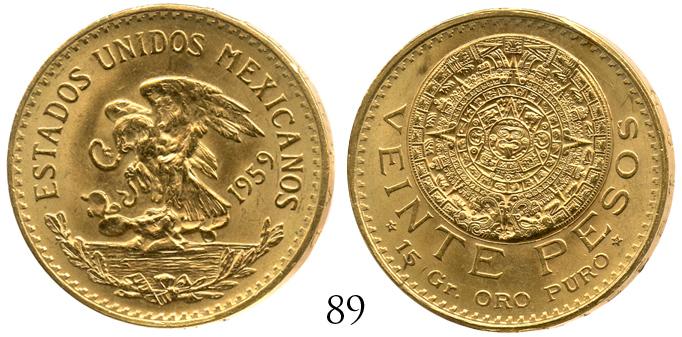Mexico City, Mexico, 20 pesos, 1959. KM-478. 16.7 grams. Mint State, with significant luster.