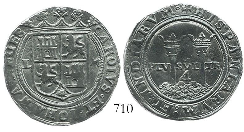 Mexico City, Mexico, 4 reales, Charles-Joanna, "Late Series," L to left, M to right. S-M9; KM-18; CT-86. 13.5 grams. Broad flan, full details (XF), richly toned all over. Pedigreed to the John Pullin collection, and pedigreed to the Ponterio auction of November 11, 2003 (lot #461), with lot-tag.