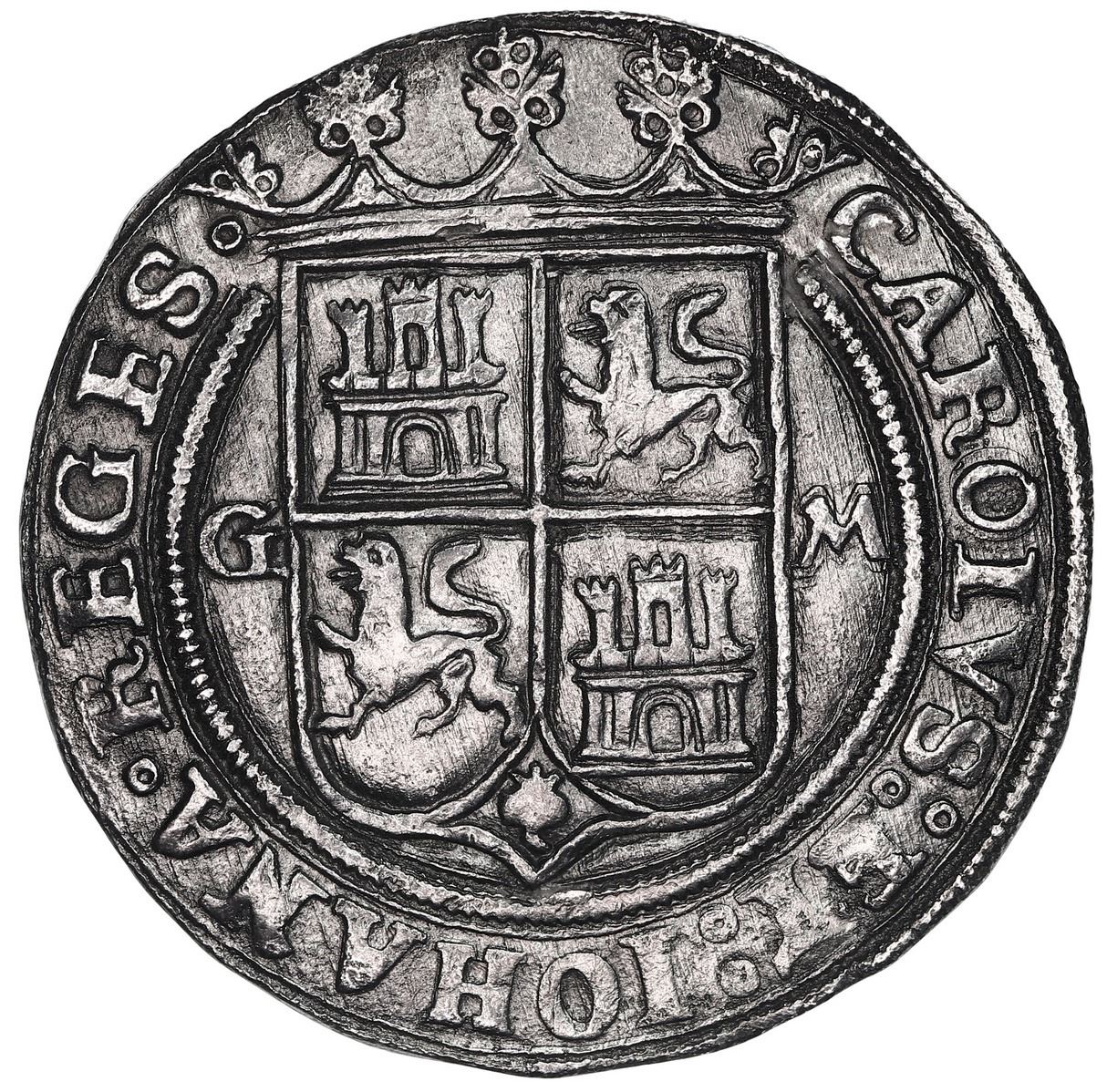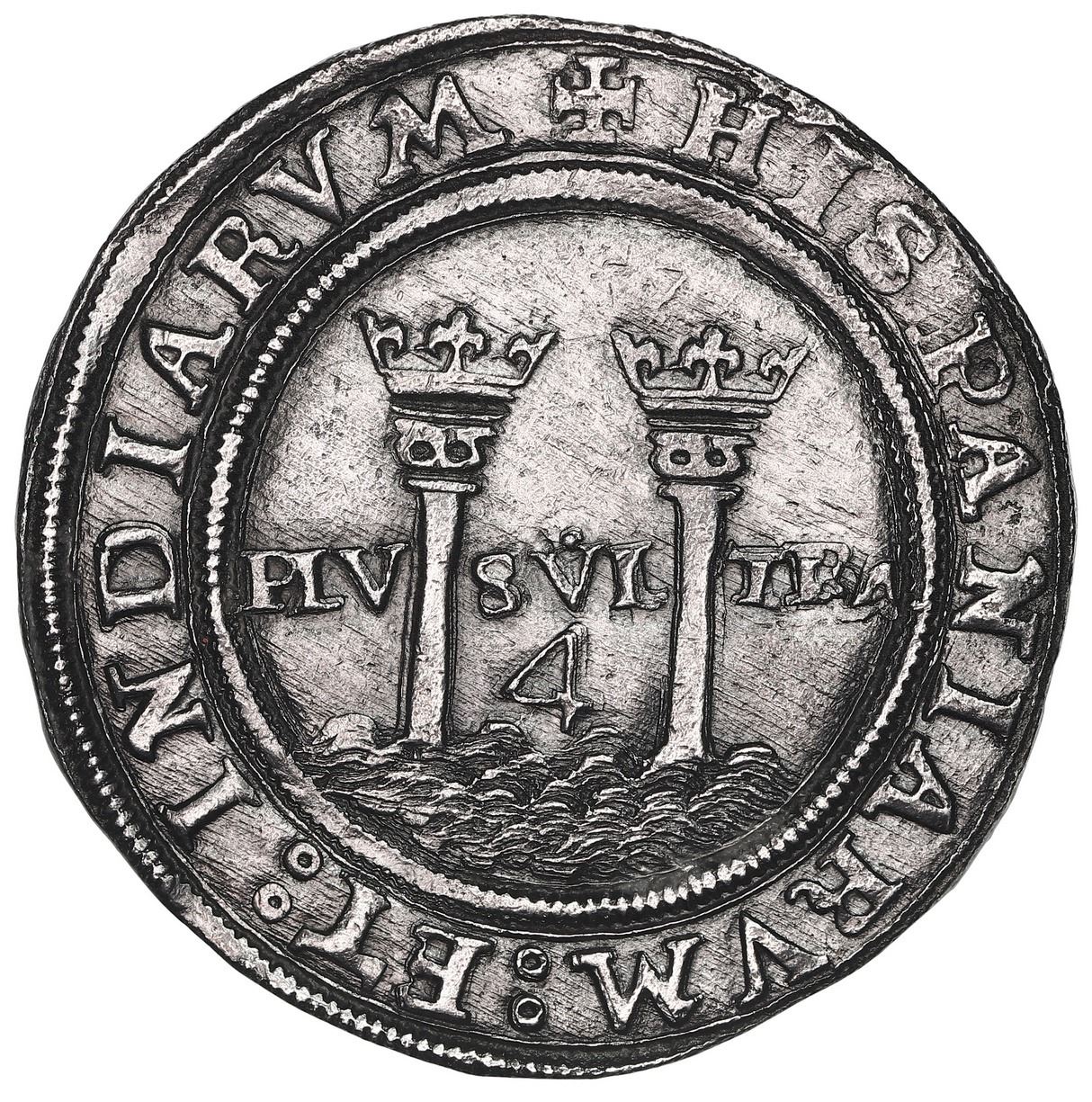 Mexico City, Mexico, 4 reales, Charles-Joanna, "Late Series," assayer G to left, mintmark M to right (G-M), NGC AU details / cleaned. Nesmith-46 type; Cal-128; S-M5; KM-18. 13.42 grams. Darkly toned, struck on an ample-sized planchet, full legends and details, probably from the "Golden Fleece wreck" (ca. 1550). Pedigreed to the Clyde Hubbard Collection of Mexican Charles-Joanna Coinage (stated on label). Accompanied by original tag or holder.