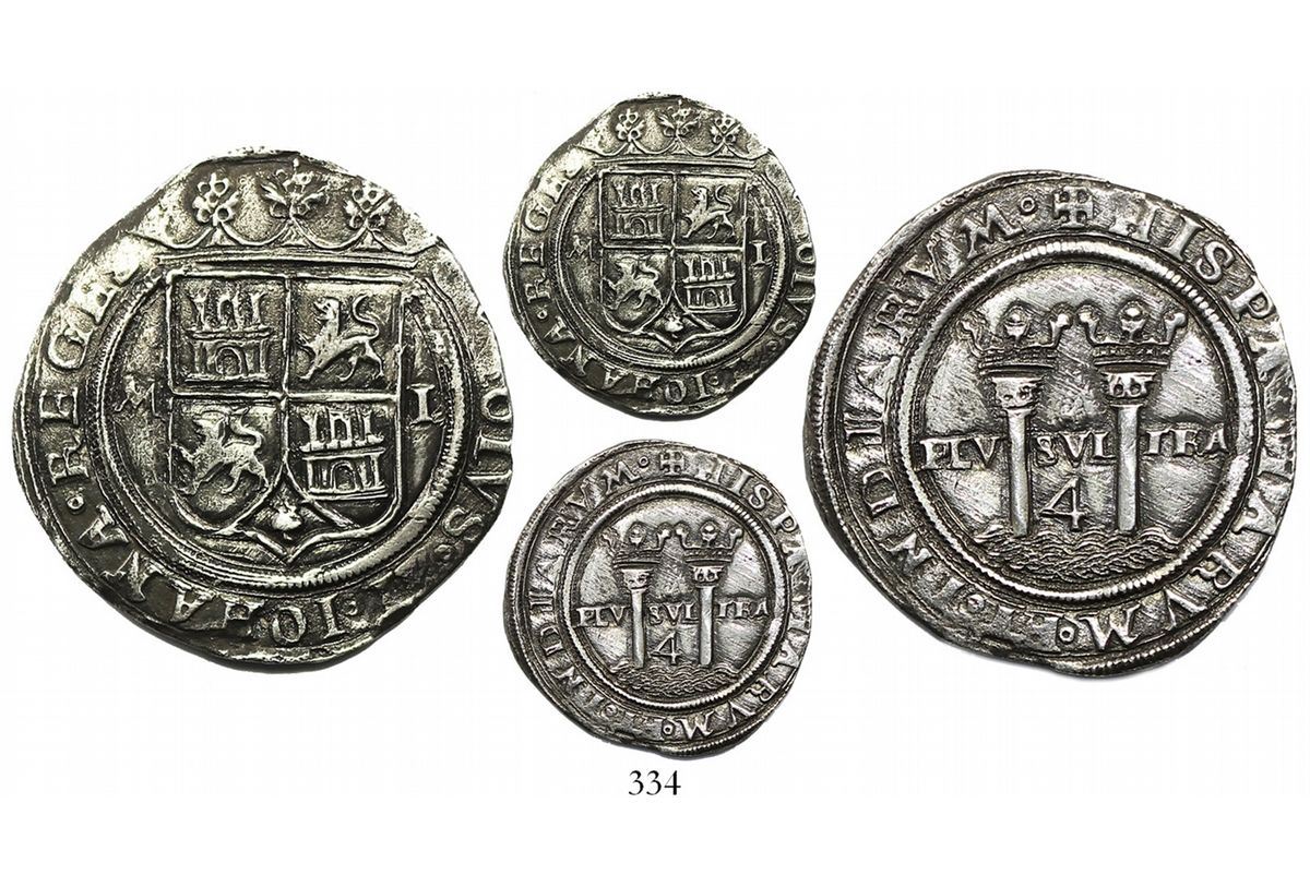 Mexico City, Mexico, 4 reales, Charles-Joanna, "Late Series," assayer L to right, mintmark M to left. S-M9; KM-18 ;CT-84. 12.89 grams. Superb specimen with bold AU details, nearly full legends, well struck and beautifully toned, minimal corrosion (at edge only). Recovered from: Santiago, sunk in 1585 on the Bassas da India atoll between Mozambique and Madagascar (east of Africa)