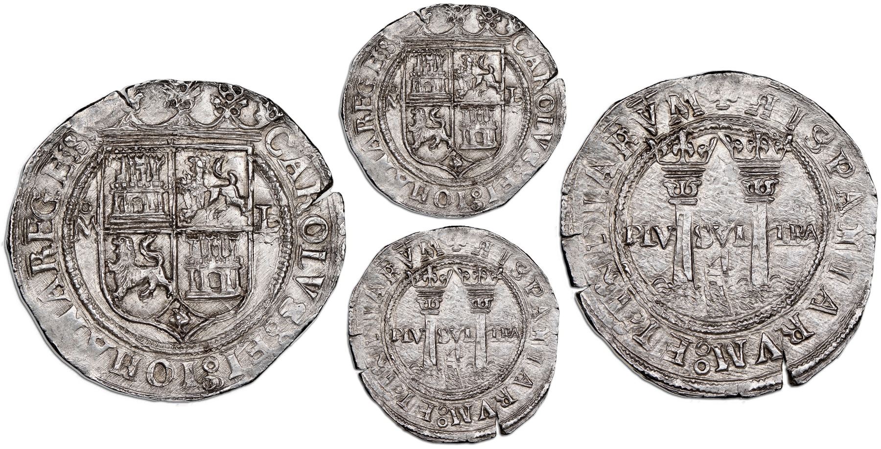 Mexico City, Mexico, 4 reales, Charles-Joanna, "Late Series," assayer L to right, mintmark oM to left (oM-L), NGC MS 65, finest known. Nesmith-90; Cal-135; S-M9; KM-18. 13.76 grams. Not only is this far and away the highest grade we have seen for this whole series, this is also an exceptional strike for later assayer L (post-1550s), with 100% details on a very broad flan, very slightly doubled on pillars side only and tiny edge-split, but also with unprecedented luster and the sharpest high-point details we have ever seen for this type. NGC #5850256-001.