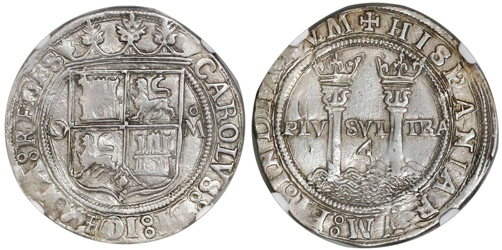 Mexico City, Mexico, 4 reales, Charles-Joanna, "Late Series," assayer O to left, mintmark oM to right (O-oM), NGC AU 58, finest known in NGC census, ex-Rudman (stated on label). Nesmith-106 type; CT-89; S-M10. 13.8 grams. Super-broad flan with full details, bright white surfaces (no toning), absolutely exceptional quality for this assayer. Pedigreed to the Isaac Rudman collection. NGC #2789249-022.