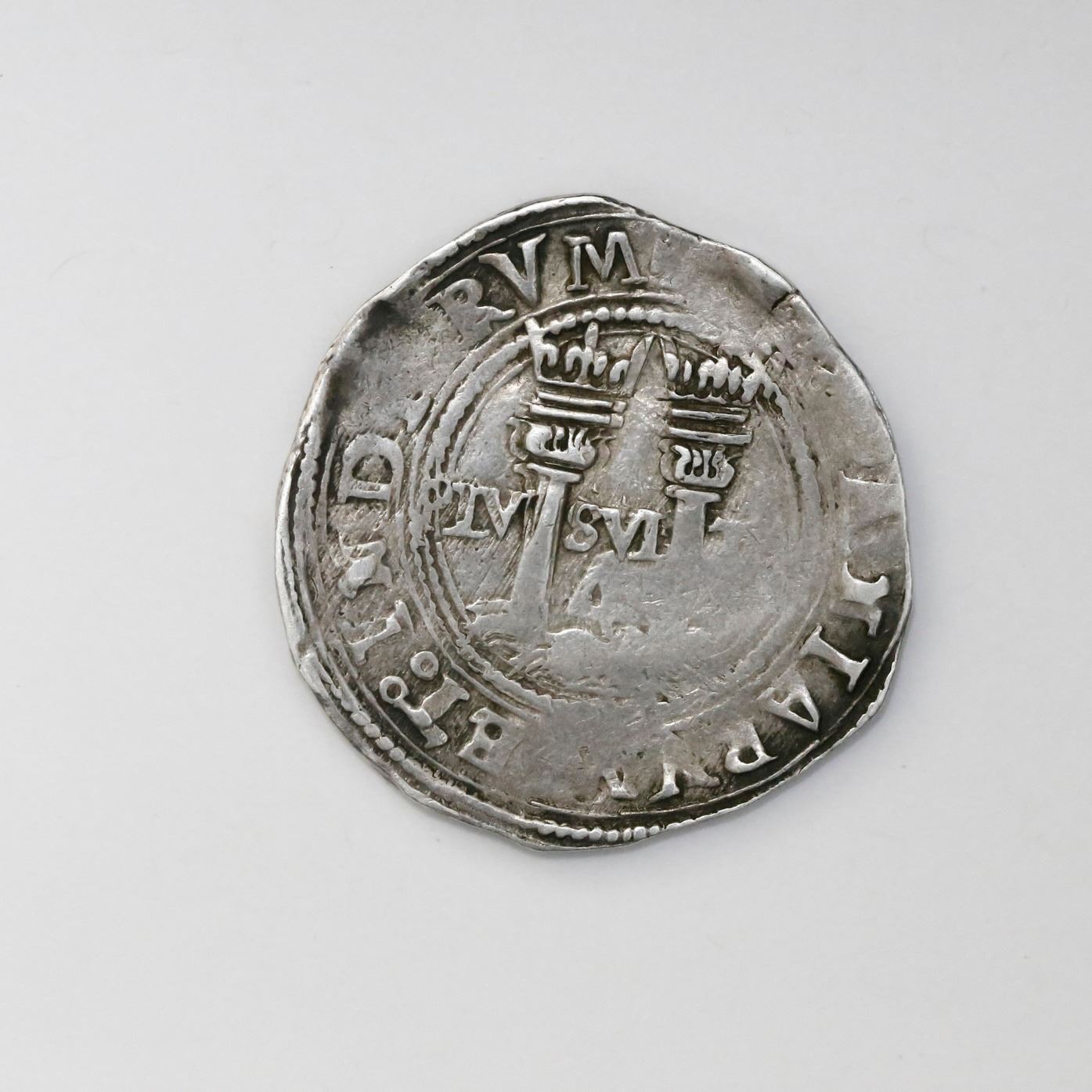 Mexico City, Mexico, 4 reales, Charles-Joanna, "Late Series," assayer O to right, mintmark oM to left (oM-O). Nesmith-1106; CT-88; S-M10. 13.65 grams. Crude strike and flan as usual for this assayer, with much flatness but some bold legend and tops of pillars (shield nice, too), technically AVF with dark toning in crevices.